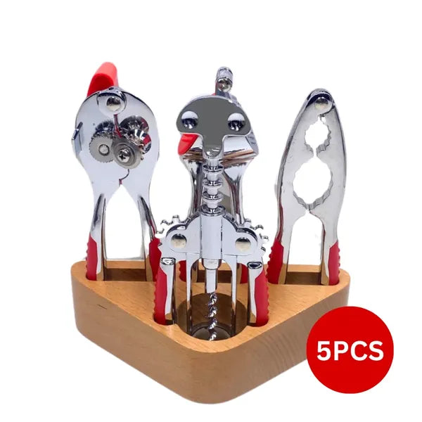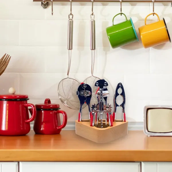 5 részes konyhai eszközkészlet fa állvánnyal – dugóhúzó, diótörő
