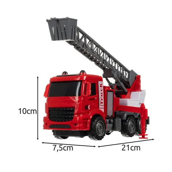 A gondosan megtervezett ABS és PP műanyag alkatrészek ütésállóak, nem karcolják a bútorokat, így biztonságosak beltéri játékhoz is. A járművek lendkerekesek: egy határozott lökés után önállóan robognak, akadálynál pedig irányt váltanak. A mozgatható létra, kosár és darukar fejleszti a finommotorikát, a szerepjáték pedig a kreativitást.