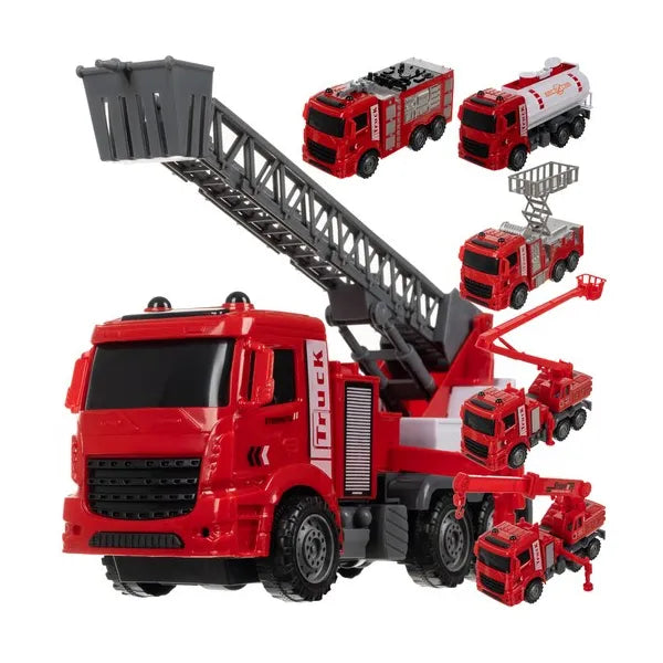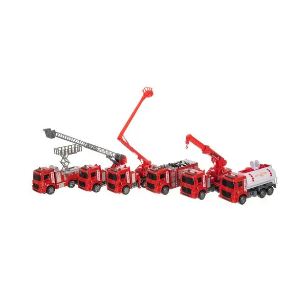 - 6 különböző tűzoltó jármű – létrás, kosaras, tartályos, darus kialakítás