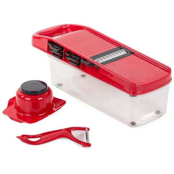 A csomag tartalma: szeletelő alap gyűjtődobozzal, 6 penge, terméktartó, rozsdamentes hámozó, eredeti csomagolás.