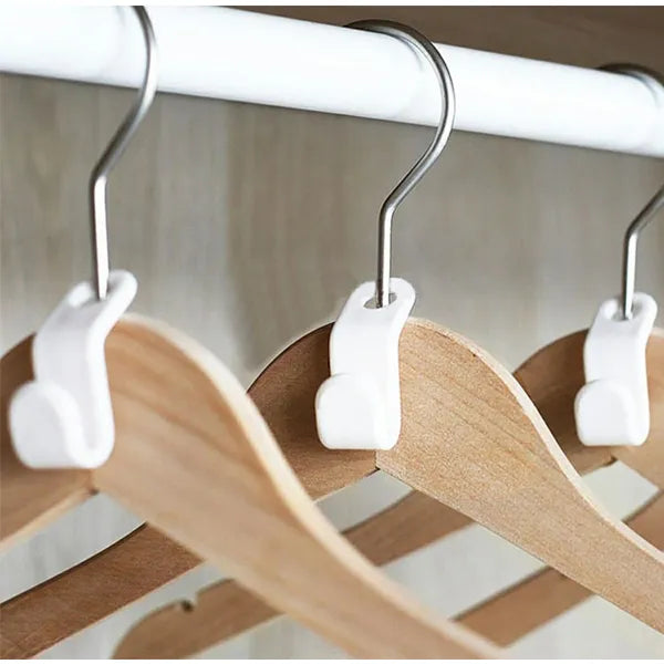 Egyszerűen akaszd a vállfatoldót a vállfa nyakára, majd az alsó nyílásba illeszd a következő vállfa akasztóját – ismételd, amíg el nem éred a kívánt kapacitást.