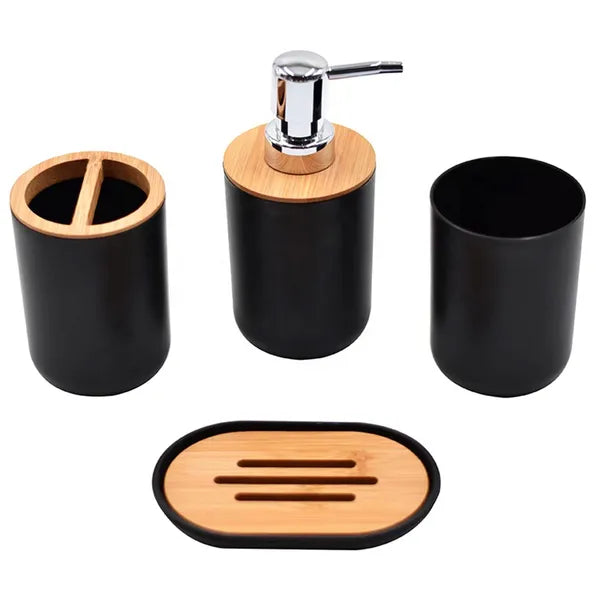 6 darabos fekete fürdőszobai kiegészítő szett, polipropilén, bambusz