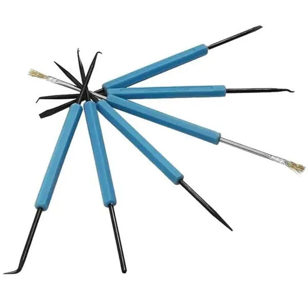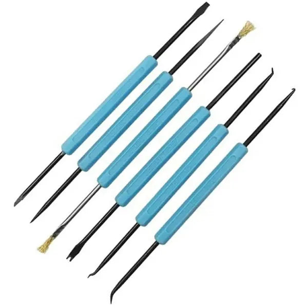 Univerzális, precíziós szerszámkészlet elektronikai szereléshez és karbantartáshoz. A kettős végű eszközök megkönnyítik a készülékházak bontását, a forrasztási felületek előkészítését és a finom tisztítási feladatokat. A hosszú, kényelmes markolat biztos fogást kínál a pontos, biztonságos munkához.