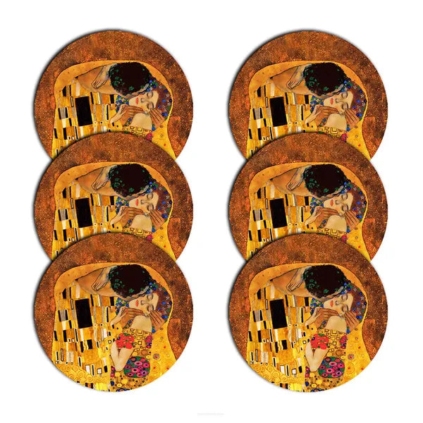 Dobd fel a terítéket ezzel a 6 darabos, 33 cm átmérőjű kör alakú filc tányéralátét szettel, amelyet Gustav Klimt ikonikus „A csók” festményének részlete díszít. A vékony, préselt poliészter filc megbízható hő- és karcvédelmet nyújt, csökkenti az edények zaját, és modern, elegáns megjelenést kölcsönöz az asztalnak.