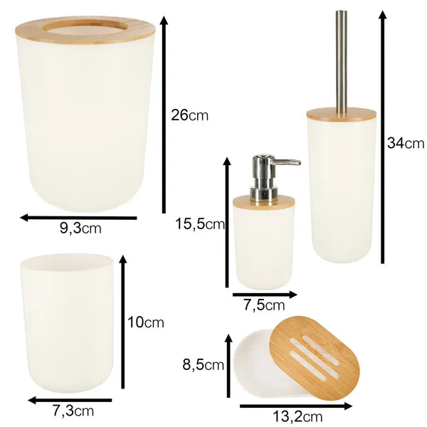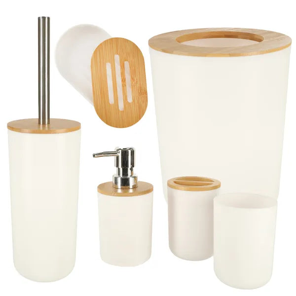 Stílusos, egységes megjelenést szeretne a fürdőszobában? A 6 részes, fehér színű szett mindent tartalmaz, amire a mindennapi higiénia során szükség lehet, így nem kell külön-külön keresgélnie a kiegészítőket.