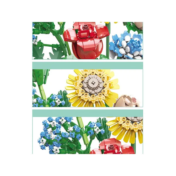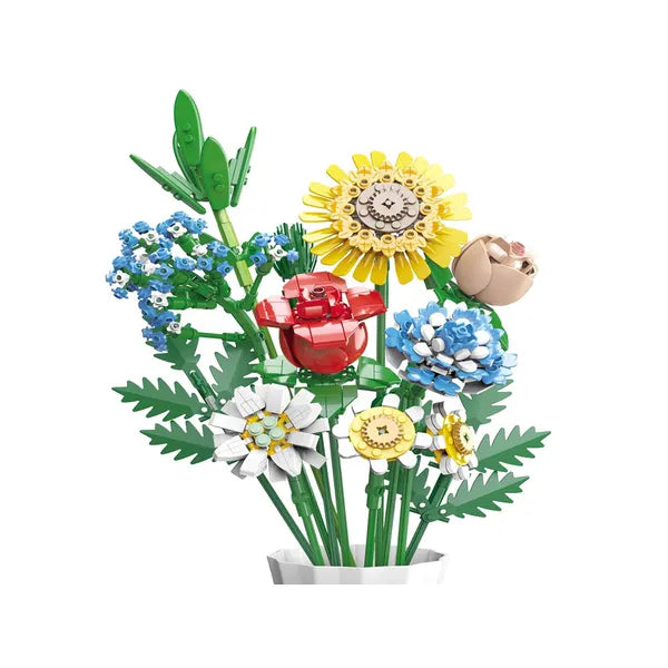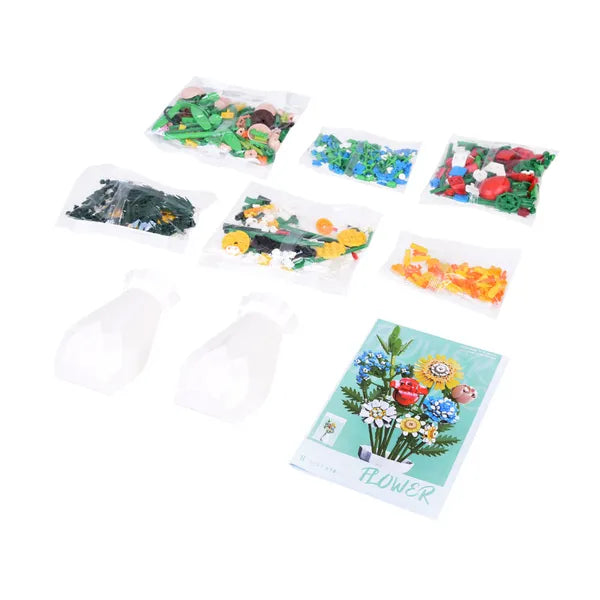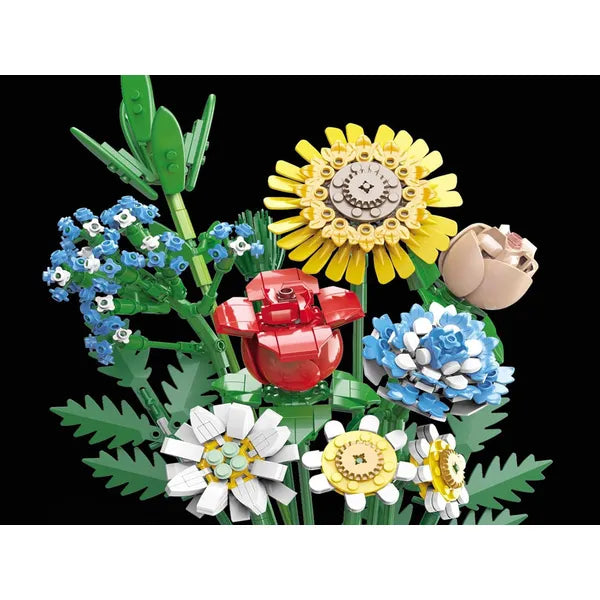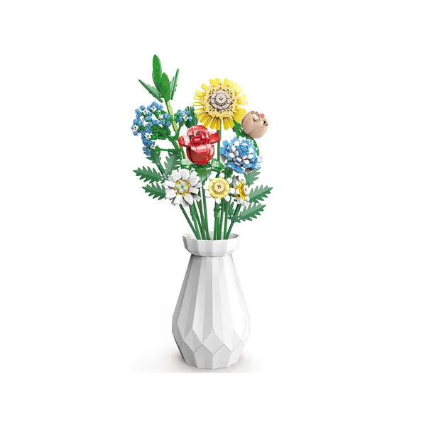 618 darabos építőkocka virágcsokor készlet váza, 11 szál vadvirág