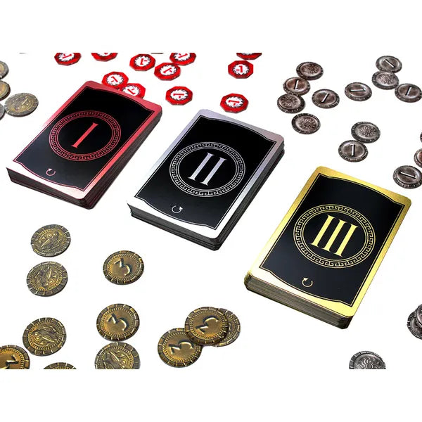 - Katonai erő - Minden fordulóban összehasonlítod katonai erődet a szomszédaiddal (a bal és jobb oldali játékosokkal). A katonai erőt katonai kártyák növelik, és a pontszám a birtokolt katonai kártyák számán alapul. Katonai befolyás összehasonlítása: Ha több katonai befolyáspontod van, mint a szomszédodnak, győzelmi pontokat szerzel. Ha kevesebb, pontokat veszítesz.