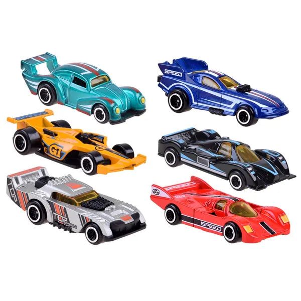 - 6 db különböző színű sportautó (7,5 × 3,5 × 2 cm)
