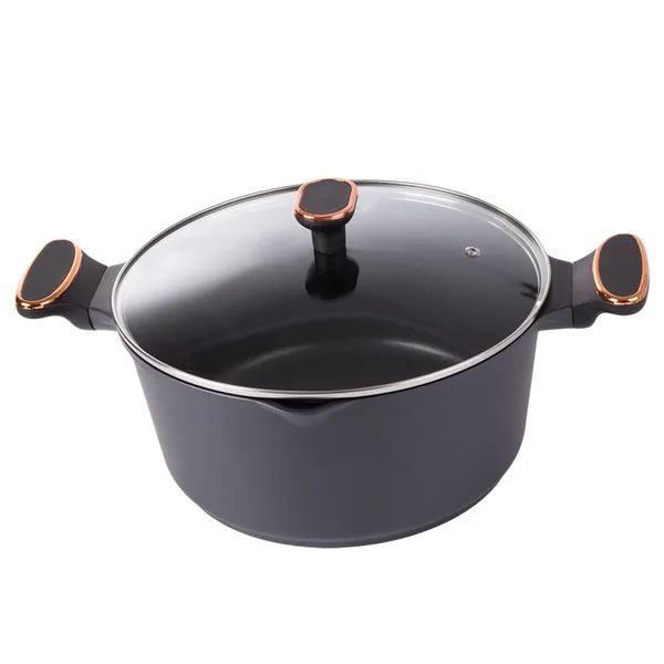 7 l-es öntött alumínium, tapadásmentes mély fazék fedővel, indukciós