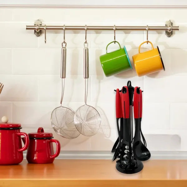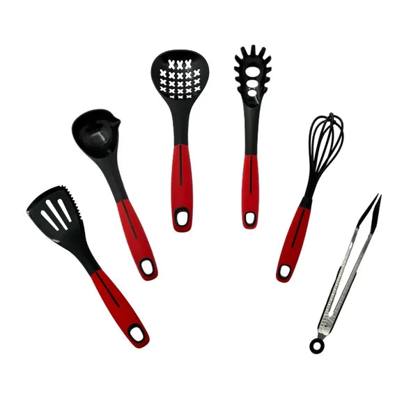 7 részes PBT fejű konyhai eszközkészlet állvánnyal, fekete/piros