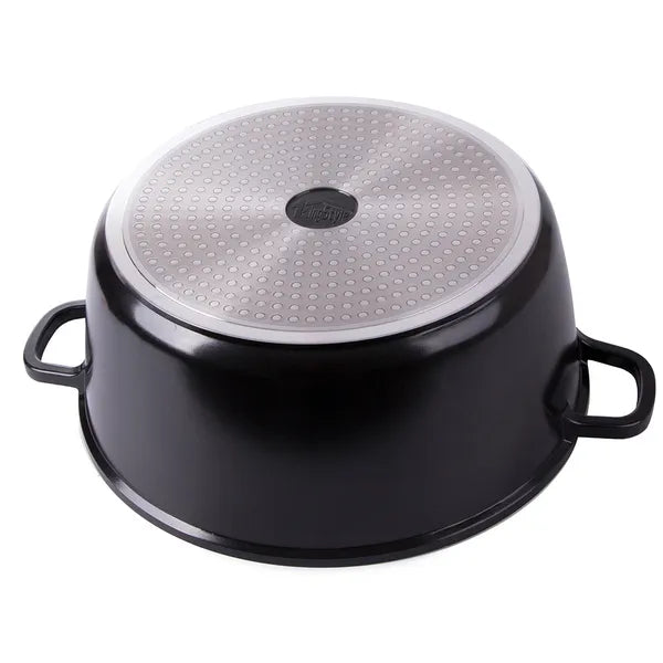Szívesen főznél egyszerre nagyobb adag levest vagy pörköltet? A 7,8 literes, öntött alumíniumból készült fazék villámgyorsan felmelegszik, a tapadásmentes kerámia bevonatnak köszönhetően pedig minimális zsiradékkal is tisztán tartható.