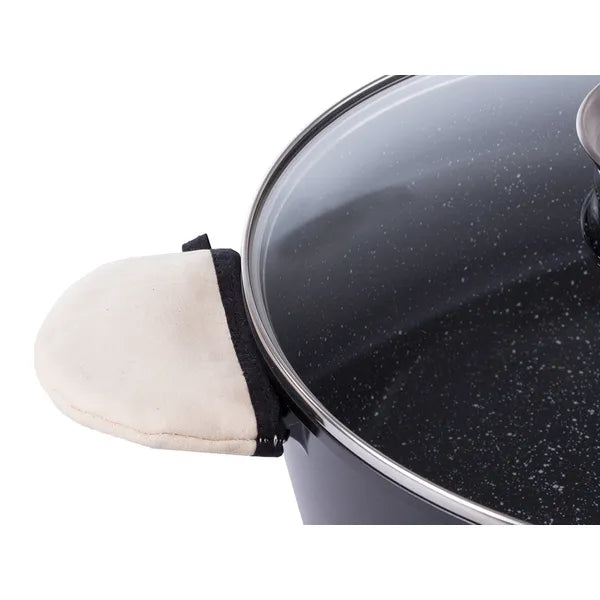 A csomag tartalma: fazék, üvegtető aromatizálóval, 2 db hőálló kesztyű, eredeti doboz.