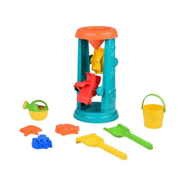 8 részes homokozó szett 37 cm homokmalommal, vödörrel és formákkal