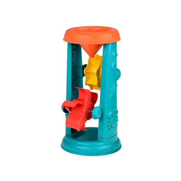Ki mondta, hogy a homokozás nem lehet tanulás is? A színes, tengeri motívumos, 8 részes homokozó szett központi eleme a 37 cm-es homok- és vízmalom, amelyen a gyermek figyelemmel kísérheti, hogyan indítja el a beöntött anyag a két nagy kereket. A forgó kerekek látványosan mutatják be az ok-okozati összefüggéseket, fejlesztik a logikus gondolkodást és lekötik a figyelmet.