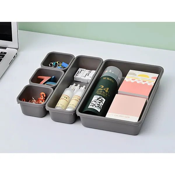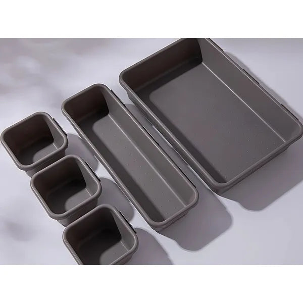 8 részes szürke műanyag fiókrendező tálca készlet, moduláris méretek