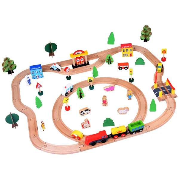 80 darabos fa vasútkészlet mágneses mozdonyokkal és kiegészítőkkel