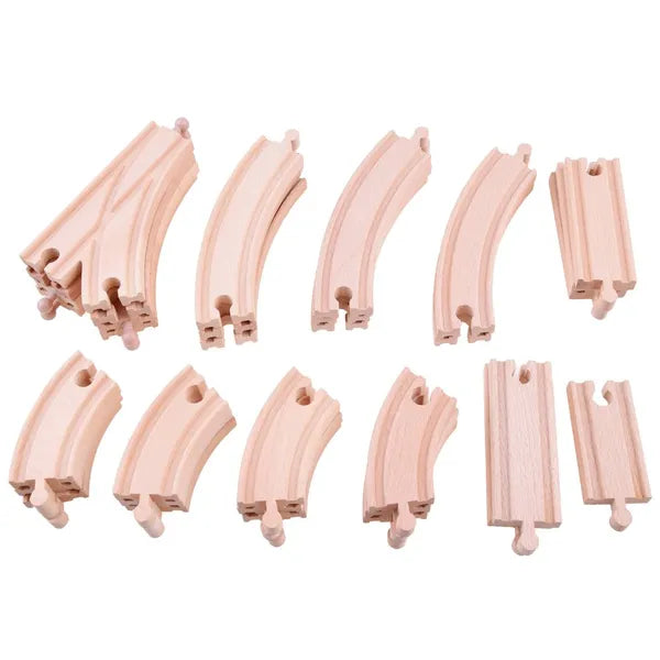 - Variálható pálya – akár 360 cm hosszú sínrendszer, kompatibilis más fa vasutakkal.