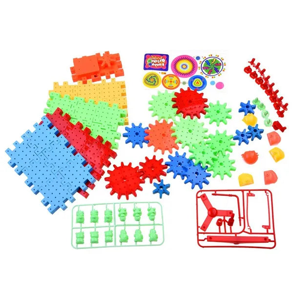 81 darabos waffle építőkocka készlet fogaskerekekkel és állatfigurákkal