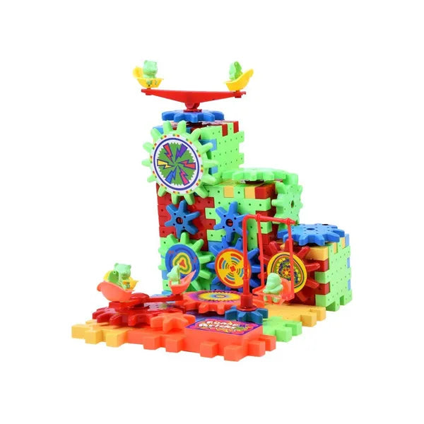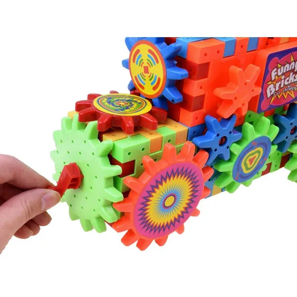 - Elektromos meghajtású fogaskerék – 1 AA elemmel működik (nem tartozék), így az építmények megmozdulnak