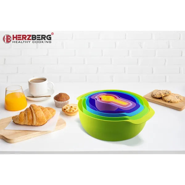 9 az 1-ben konyhai tál és mérőpohár készlet, BPA-mentes, mikró- és mosogatógép-álló