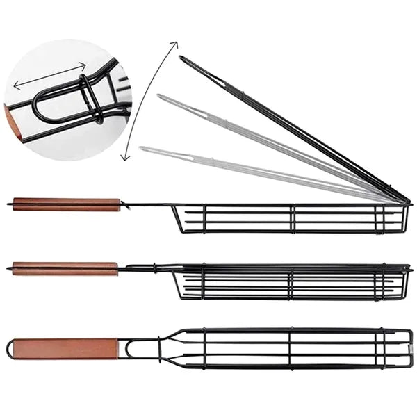 AG666F zárható grillsütő kosár, 49 cm, tapadásmentes, fa nyél