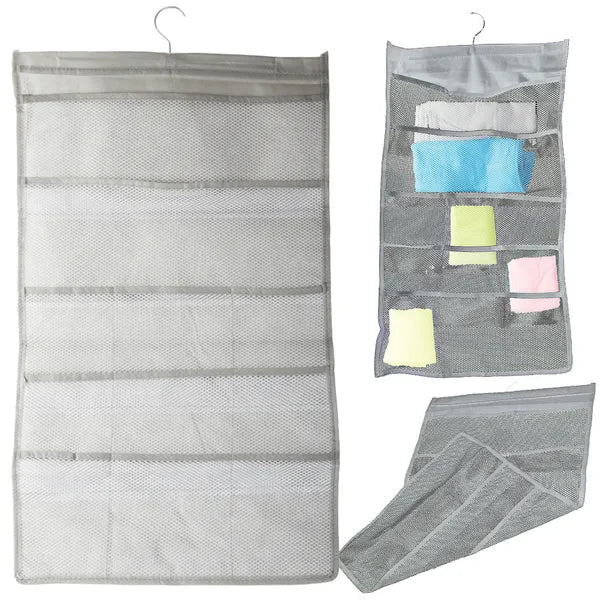 Felejtsd el a rendezetlen zoknikat és elgurult alsóneműket! A kétoldalas, akasztós fehérnemű rendező 22 tágas zsebével segít a gardrób minden centiméterét maximálisan kihasználni.