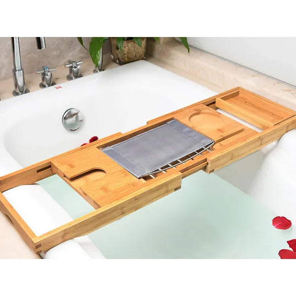 Varázsolj igazi wellness-hangulatot otthonodba ezzel az állítható, bambusz kádpolccal! A természetes, nedvességálló bambusz tökéletes felületet biztosít kedvenc könyved, tableted vagy egy pohár bor számára, miközben kényelmesen lazítasz a meleg vízben.