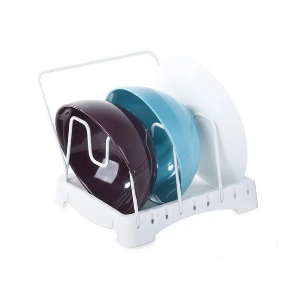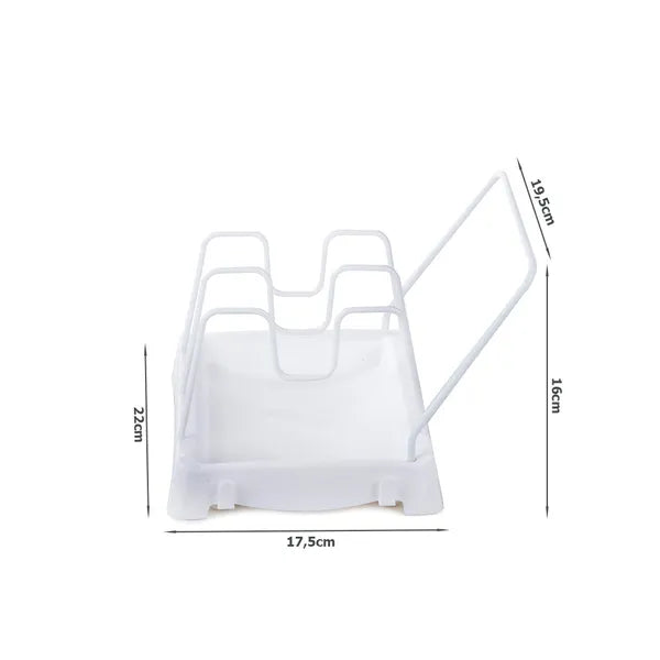 Eleged van a szanaszét heverő fedőkből, tálcákból és serpenyőkből? A fehér, 22×17,5×16 cm-es edényszárító állványunkkal pillanatok alatt rendszert vihetsz a konyhapultra. A tartós műanyag-fém kombinációjú alap három mozgatható karral rendelkezik, így tetszés szerint alakíthatod ki a rekeszeket kisebb tányéroknak vagy nagyobb lábasfedőknek is. A lecsorgó víz a perforált aljzaton keresztül távozik, ezért a mosogatás után az edények gyorsan és higiénikusan száradnak, mielőtt a szekrénybe kerülnének.