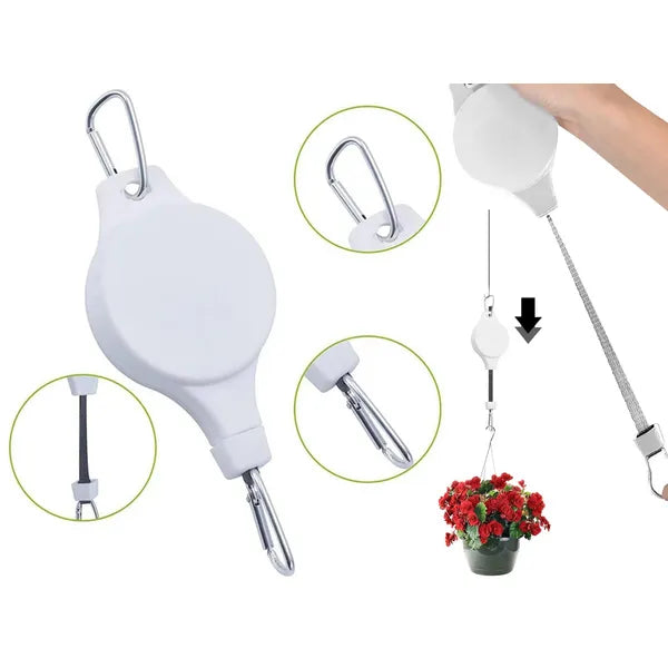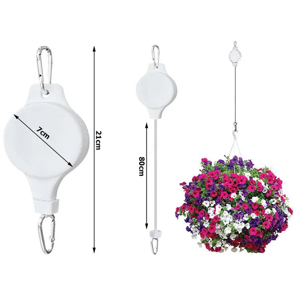 Könnyítse meg a magasban lógó virágok gondozását ezzel az állítható, kihúzható virágtartó kampó párossal. A megerősített nylon heveder 80 cm-ig húzható ki, így létra nélkül érheti el a cserepeket, madáretetőt vagy lámpást.