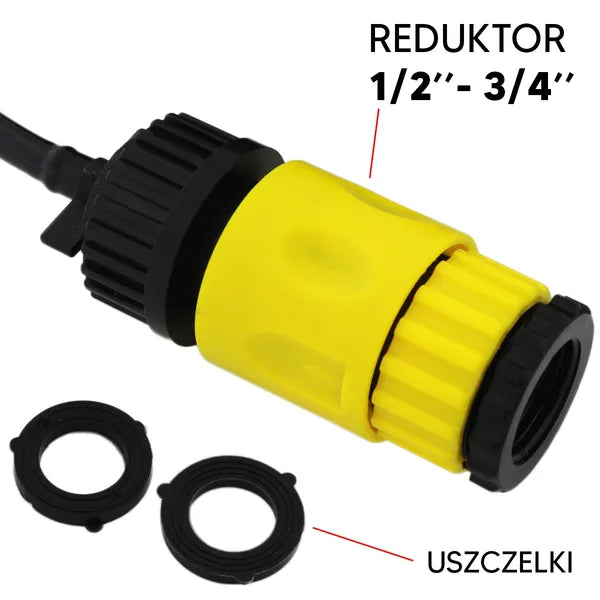 - Gyorscsatlakozó 1/2” és 3/4” külső menetes csaptelepekhez – szerszám nélkül