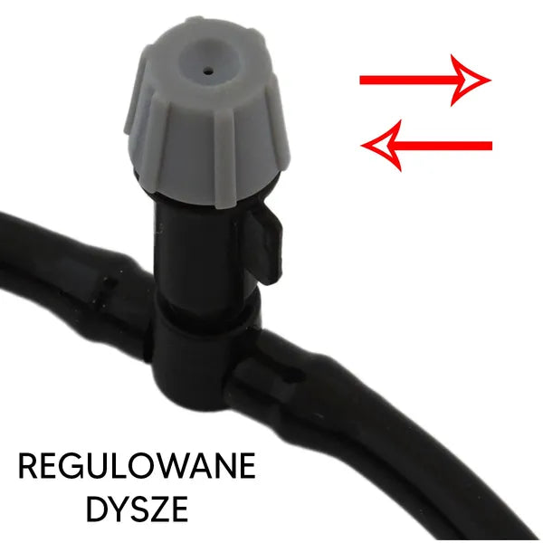 - 10 m hosszú tömlő 11 darab, finom porlasztású fúvókával a széles hűsítő felületért