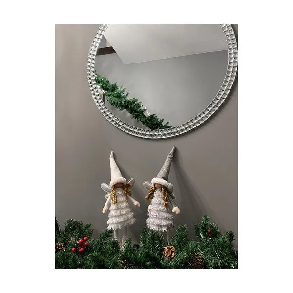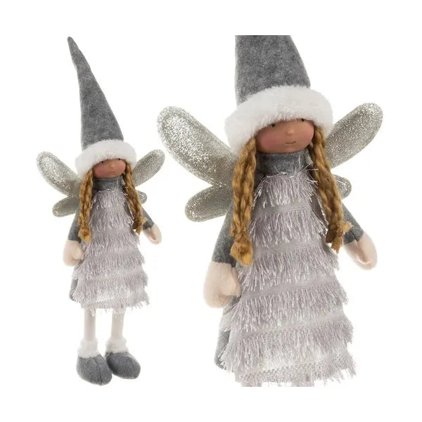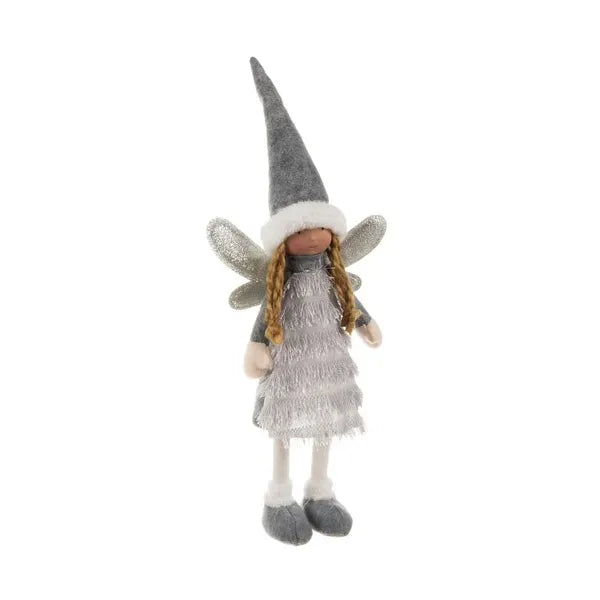Elegáns, csillogó szárnyú álló tündérfigura, amely varázslatos karácsonyi hangulatot teremt bármely helyiségben. Puha, kötött garbós ruhát, prémes sapkát és vastag talpú csizmát visel, így stabilan megáll a kandallón, komódon vagy a karácsonyfa alatt is.