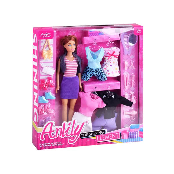 Anlily 30 cm baba ruhákkal, cipőkkel és fodrász kiegészítőkkel