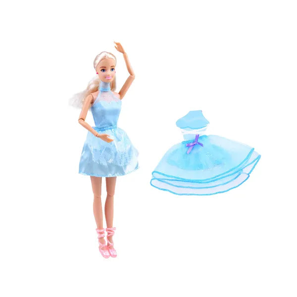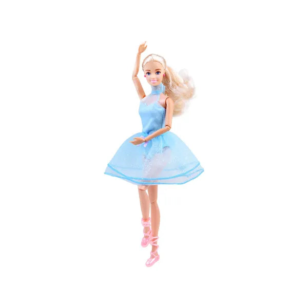 Az Anlily baba hosszú szőke hajával és elegáns kék ruhájával azonnal a gyerekek kedvence lesz. A 30 cm-es játékfigura könyökben és térdben hajlítható, így könnyedén eljátszható vele a balett, tánc vagy bármilyen fantáziajáték. A készletben egy csillámos, cserélhető szoknya és rózsaszín balettcipők is találhatók, amelyek még változatosabb öltöztetést tesznek lehetővé. Színes, ajándékozásra kész dobozban érkezik, így tökéletes meglepetés születésnapra vagy ünnepekre.
