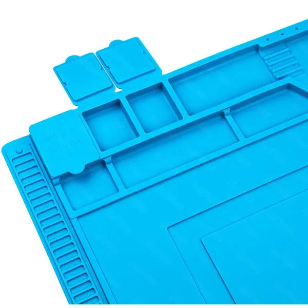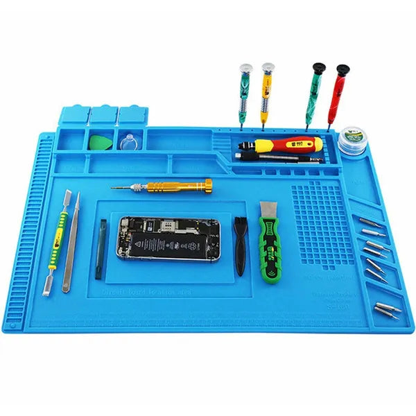 Professzionális, antisztatikus szilikon szervizszőnyeg, amely megkönnyíti az elektronikai javítást és a forrasztást. Hő- és deformációálló felülete akár 500 °C-ig ellenáll, így biztonságosan dolgozhatsz, miközben a munkaterület tiszta és rendezett marad.