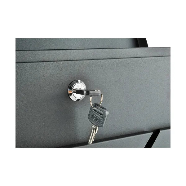 Modern megjelenésű, antracit színű levélszekrény, amely galvanizált acéltestének köszönhetően hosszú évekig ellenáll az időjárás viszontagságainak. A fedett bedobónyílás A4 formátumú küldeményekhez készült, így nem ázik el a levél vagy csomag, míg az alsó újságtartó csőben kényelmesen elférnek a feltekert napilapok és prospektusok.