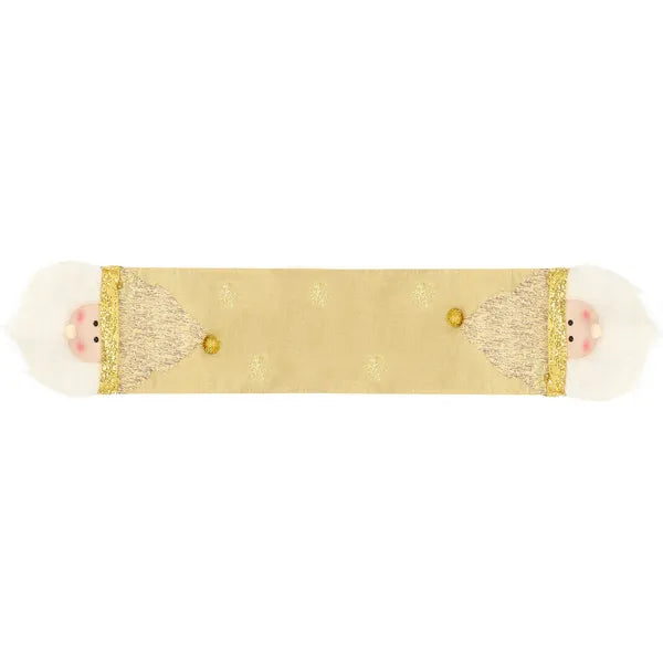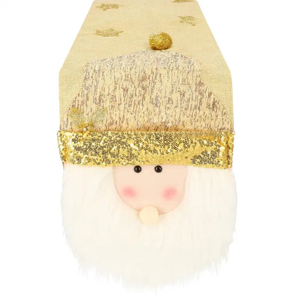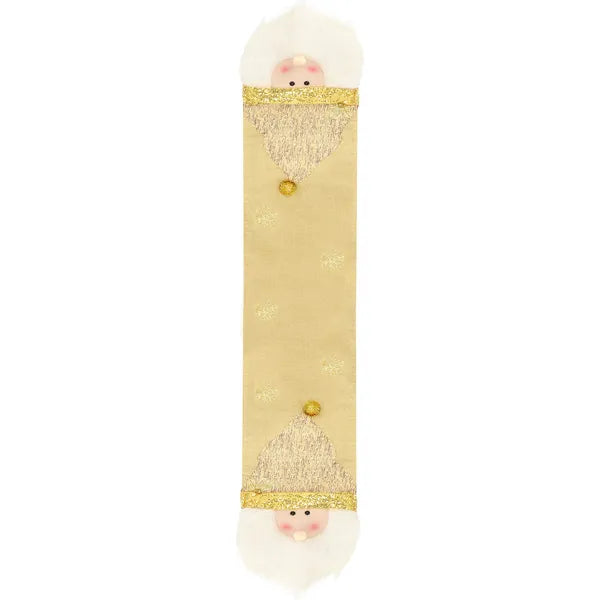 Arany karácsonyi asztali futó, Télapó mintával, 30×205 cm, flitterekkel