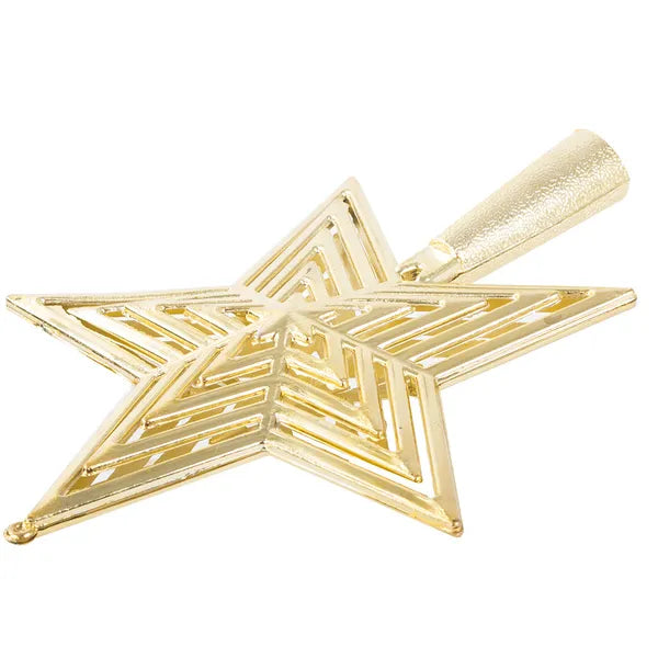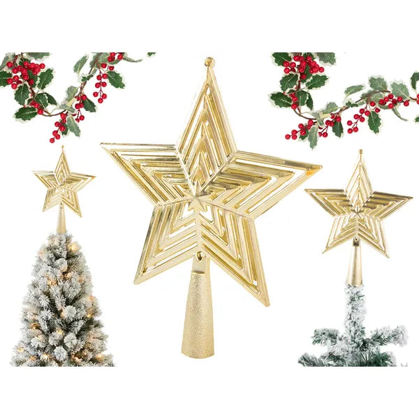 Egy ragyogó, aranyszínű csúcsdísz, amely biztonságosan koronázza meg a karácsonyfát anélkül, hogy letörné a legfelső ágat. Törhetetlen műanyagból készült, így ideális kisgyermekes családoknak vagy háziállat-tulajdonosoknak is.