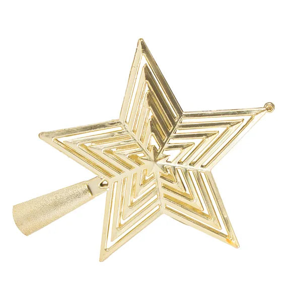 Arany műanyag karácsonyfa csúcsdísz csillag, törhetetlen, 18 cm