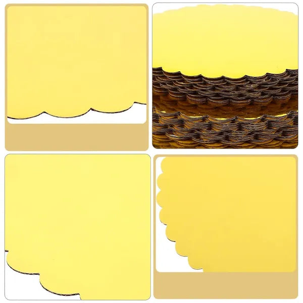 Arany színű, kerek tortaalátét, amely megkönnyíti a torta biztonságos mozgatását és esztétikus bemutatását. A recézett perem elegáns megjelenést kölcsönöz, így ünnepi alkalmakra, cukrászdáknak és otthoni sütéshez is ideális.