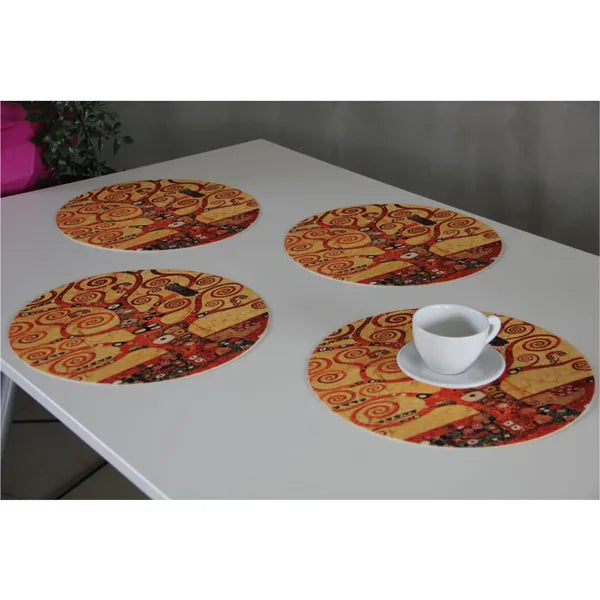 Az ArtDeco mintás, 4 darabos kerek alátét készlet ideális választás, ha az étkezőasztalodat praktikus védelem mellett elegáns megjelenéssel szeretnéd feldobni. A 33 cm átmérőjű, vékonyan préselt poliészter filc felfogja a kiömlő italokat, tompítja az edények zaját, és megóvja a fa- vagy üvegfelületet a karcolásoktól.