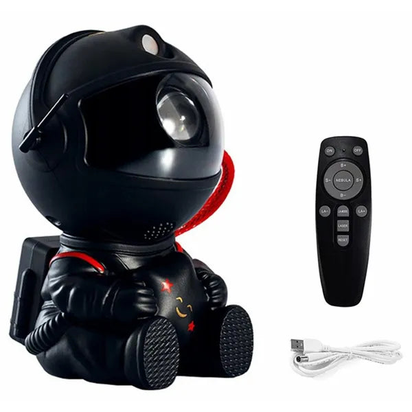 Különleges LED csillagvetítő ülő asztronauta formában, kezében csillaggal. A beépített lézer és LED-ek varázslatos csillagos égboltot vagy galaxisokat vetít, a 360°-ban forgatható fej pedig nagy felületű, egyenletes megjelenítést biztosít a szobában.