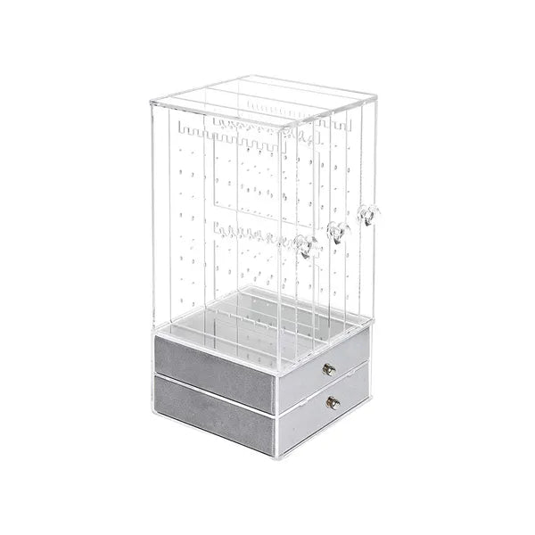 Elegáns és praktikus ékszertároló, amelyben fülbevalók, láncok, karkötők és más kedvenc kincseid átláthatóan és karcmentesen pihenhetnek. Az átlátszó akril fedélnek köszönhetően egyszerre kapod meg a vitrin hatását és a porvédelmet, így otthoni használatra és üzleti bemutatóra egyaránt ideális.