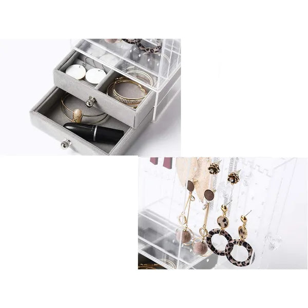 Átlátszó ékszertároló doboz bársonybetétes 2 fiókkal és vitrines résszel