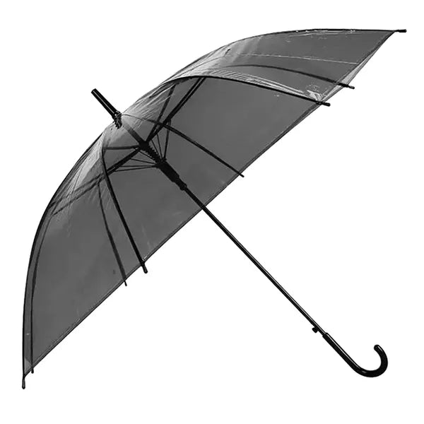 Átlátszó esernyő, automata nyitás-zárás, 8 borda, fekete, 91 cm