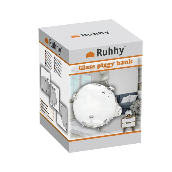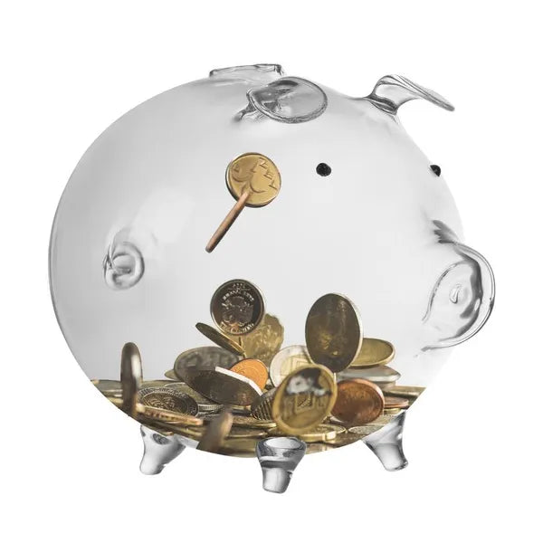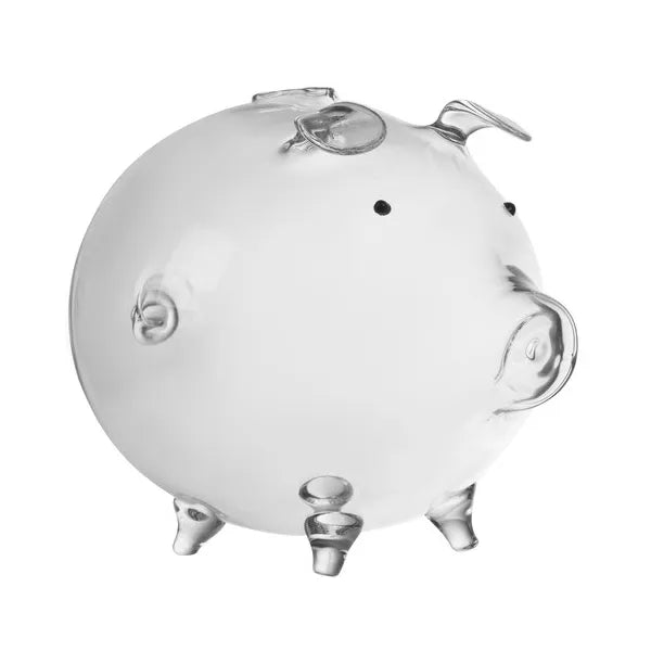 Átlátszó üveg malacpersely 12,5×18,5×12 cm, dísz és takarék