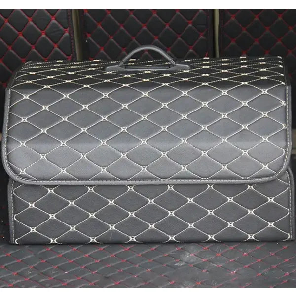Autó csomagtartó rendező doboz, ökobőr, fekete, 55×32×30 cm