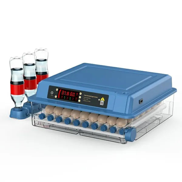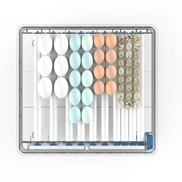 Az automata keltetőgép tyúk-, kacsa-, liba- és más baromfitojásokhoz. Beépített automatikus tojásforgatás, állítható páratartalom és LED kijelzőn követhető hőmérséklet-szabályozás. Az átlátszó fedél lehetővé teszi a keltetési folyamat megfigyelését. Hálózatról (230 V) és 12 V-os akkumulátorról is üzemeltethető (kábel a csomagban).