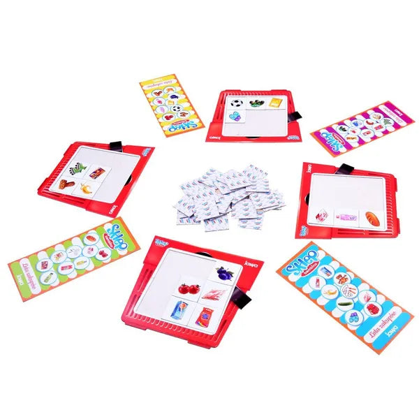 A Bambino Shopping memória társasjáték mókás bevásárlókörútra hívja a 3 évesnél idősebb gyerekeket. A játék során mindenki egy-egy bevásárlólistát kap, majd a lefordított termékkorongok között kutatva igyekszik elsőként megtölteni saját kosarát. A klasszikus memória-mechanika élvezetessé teszi a tanulást, miközben fejlődik a koncentráció, a megfigyelőkészség és a társas kompetenciák.