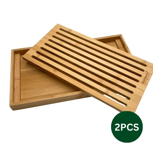 A bambuszból készült, két részes kenyérvágó deszka praktikus morzsatálcával gondoskodik a tiszta munkafelületről és a higiénikus előkészítésről. A 37×20×3 cm-es méret ideális a mindennapi sütés-főzéshez, mégis könnyen elfér a konyhaszekrényben.